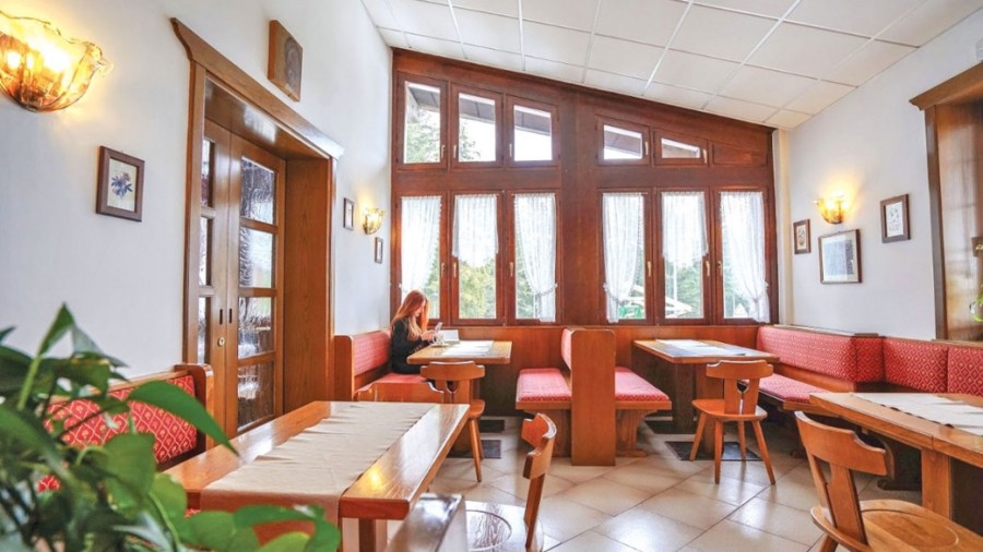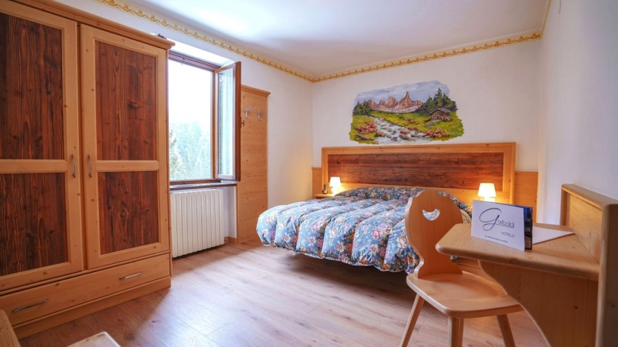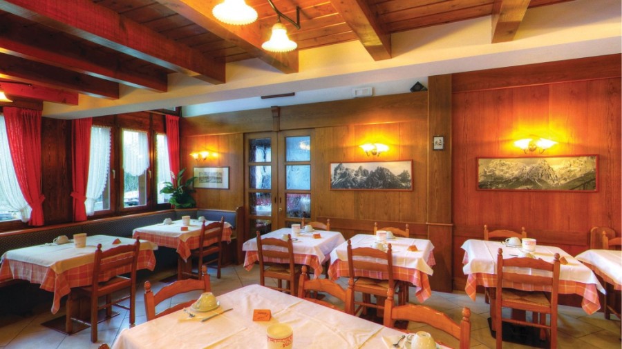 Habitaciones: Las 34 habitaciones están equipadas con baño con ducha, televisión, caja fuerte, teléfono y secador de pelo. Están amuebladas con cama doble o camas individuales, cama doble con cama adicional o cama doble con 2 camas. Algunas habitaciones tienen balcón, ventana o vistas a las Palas di San Martino.