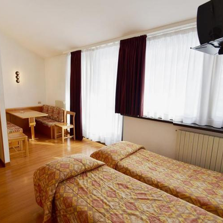 Muchos apartamentos cuentan con amplia terraza con vistas a las Dolomitas del Brenta.